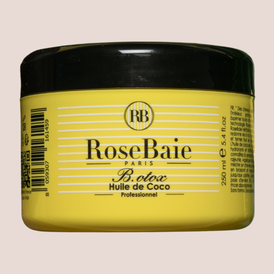Revitalisez vos cheveux avec le traitement B.otox Noix de coco Nutrition et Hydratation de Rosebaie ! Cette formule revitalisante en profondeur, enrichie en huile de coco, kératine et acide hyaluronique, hydrate intensément, élimine les frisottis et redonne vie aux cheveux secs et abîmés. L'acide hyaluronique nourrit et repulpe chaque mèche en profondeur, tandis que l'huile de coco offre une protection renforcée et une douceur soyeuse. Utilisé toutes les deux semaines, il offre des résultats visibles et durables.